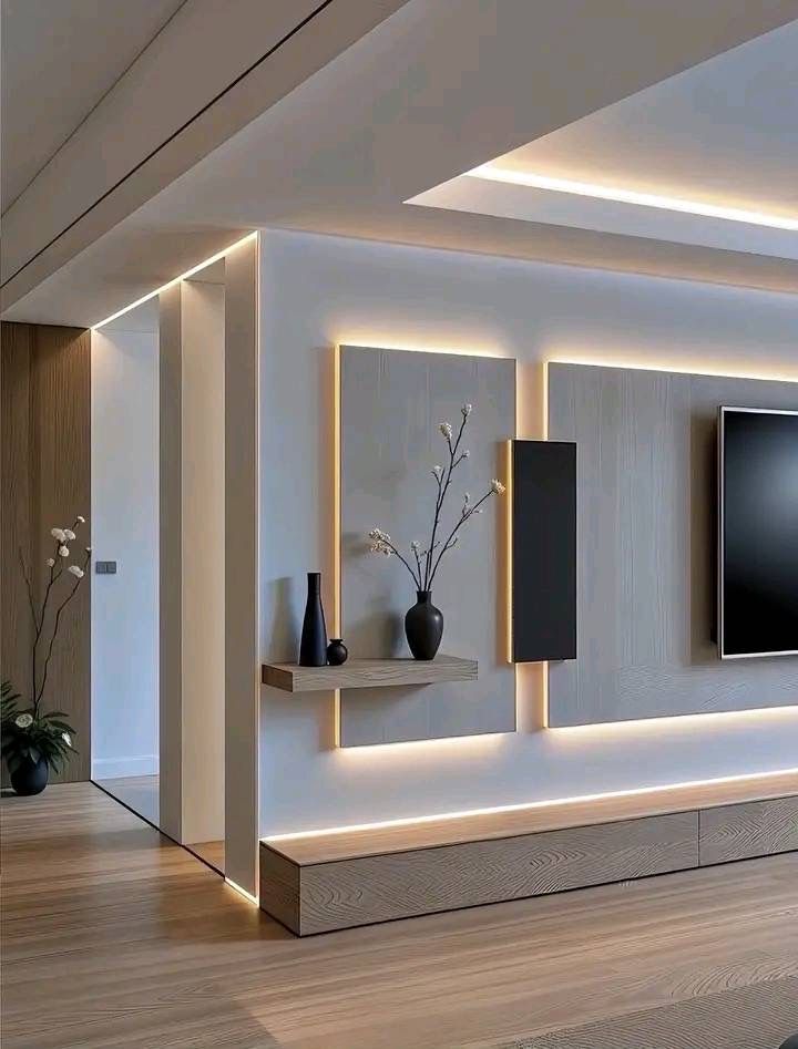 - طراحی یکپارچه برای تلویزیون، قفسه و مسیر سیمکشی