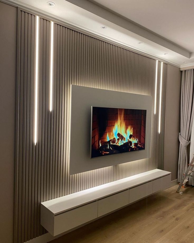۷ مدل محبوب کناف پشت تلویزیون مربع