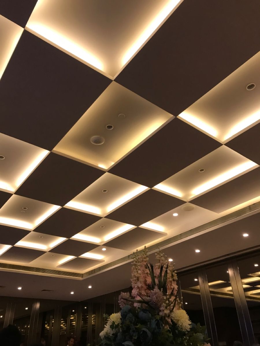 تقسیم سقف به شبکههایی مربع یا مستطیلی و نورپردازی درون آنها، باعث نظم بصری، پراکندگی مناسب نور و پوشش زیبا میشود. این مدل برای فروشگاههای زنجیرهای و دفاتر فروش مناسب است.