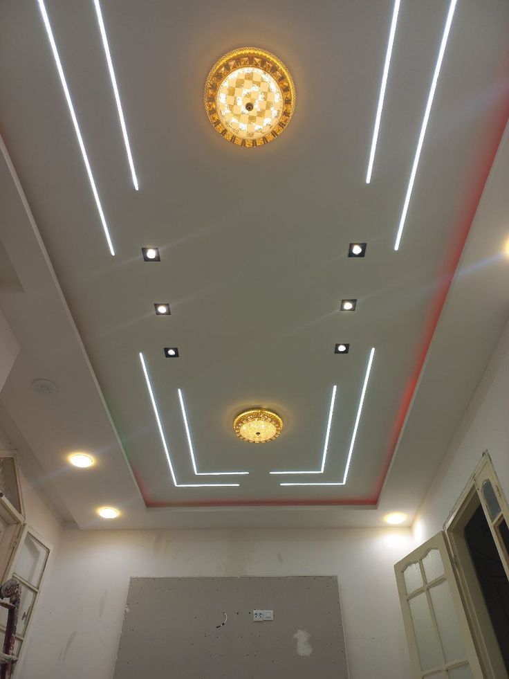 در وسط سقف، یک قاب مستطیلی طراحی شده و لبههای آن با نور مخفی تزئین میشود. سادگی در عین شیک بودن، این طرح را برای بسیاری از مغازهها کاربردی کرده است.