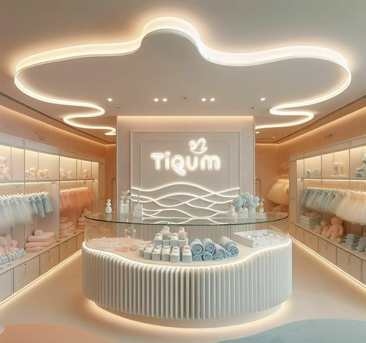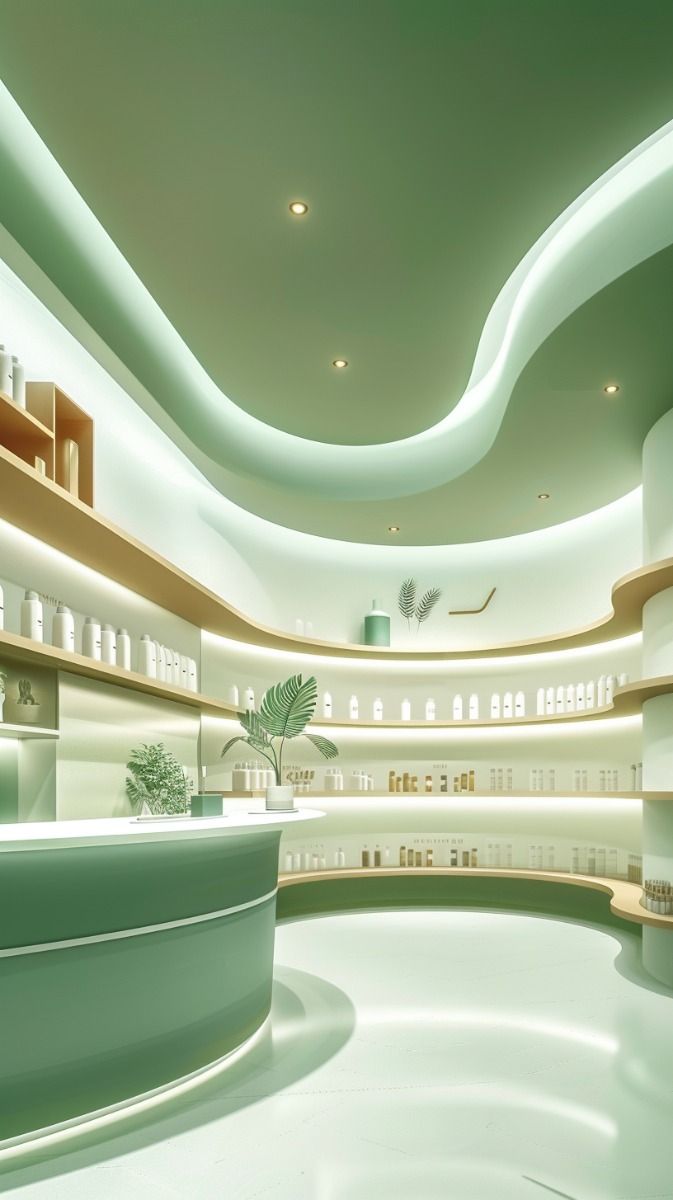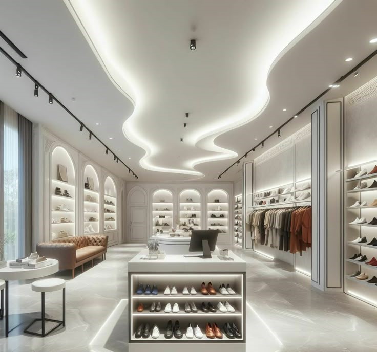 استفاده از دایرههای هممرکز یا متقاطع در وسط سقف، نمایی خلاقانه و پویا به فضا میدهد. این مدل برای مغازههای مدرن یا برندهای جوان بسیار جذاب است.