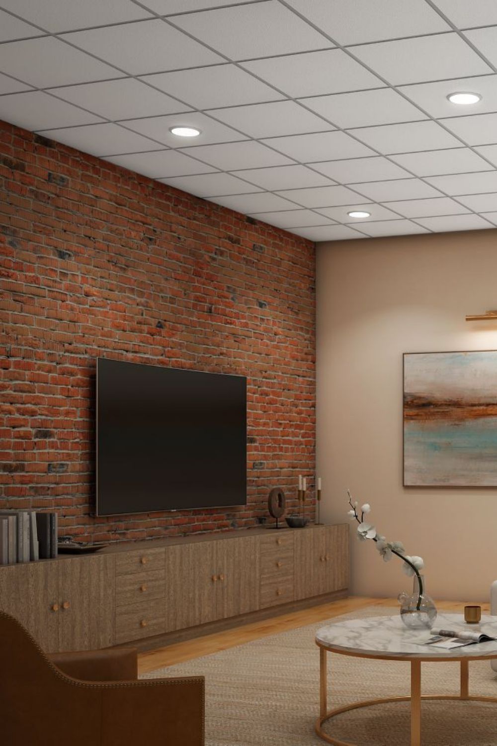 در این مدل، تایلها با طراحی خاص در کنار نورپردازی کناف استفاده میشوند. این ترکیب مناسب لابی ساختمان، فضای نشیمن یا سالنهای همایش است.