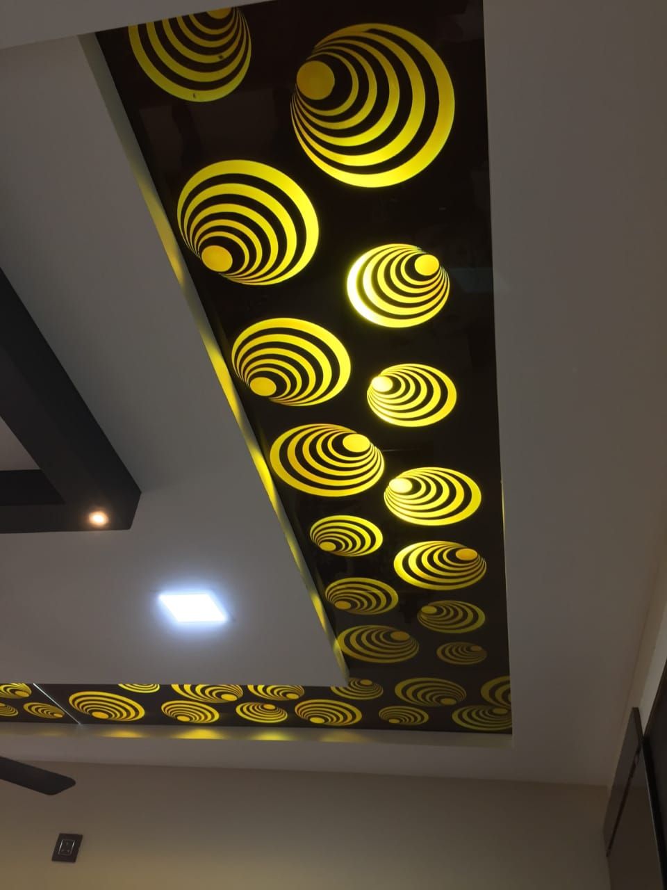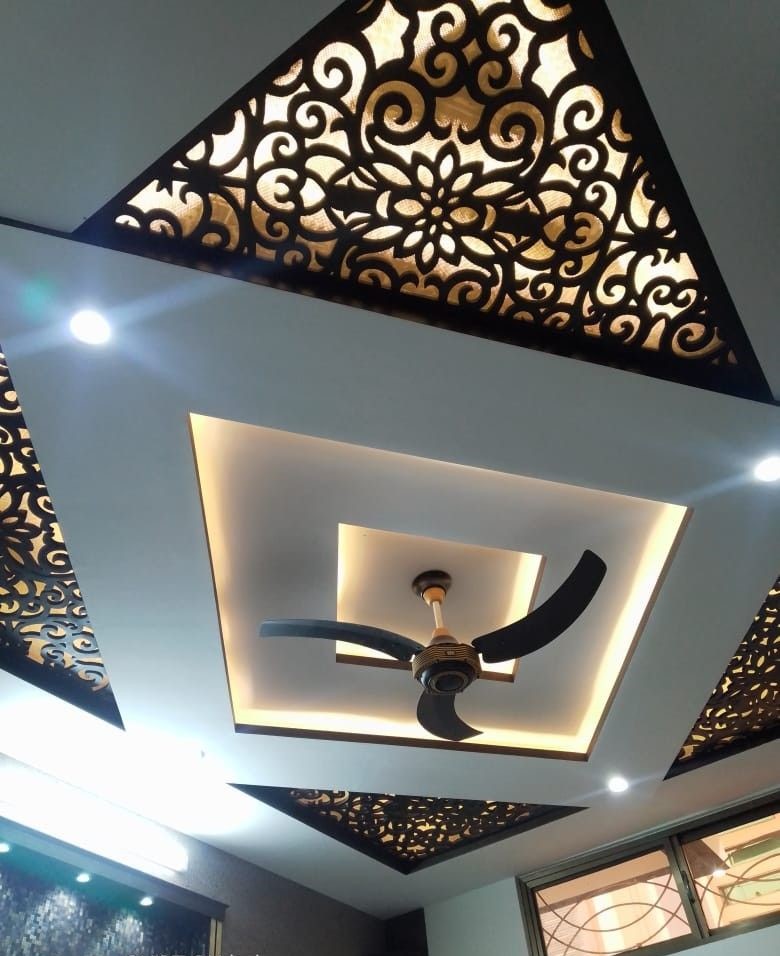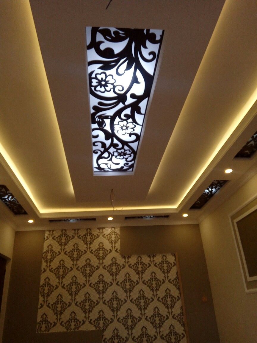 یکی از رایجترین طرحها، پنلی دایرهای در مرکز سقف است که با نقشهای سنتی ایرانی یا الگوهای گلدار CNC شده است. این مدل برای خانههایی با المانهای کلاسیک و نورپردازی مرکزی بسیار چشمنواز و باشکوه است.
