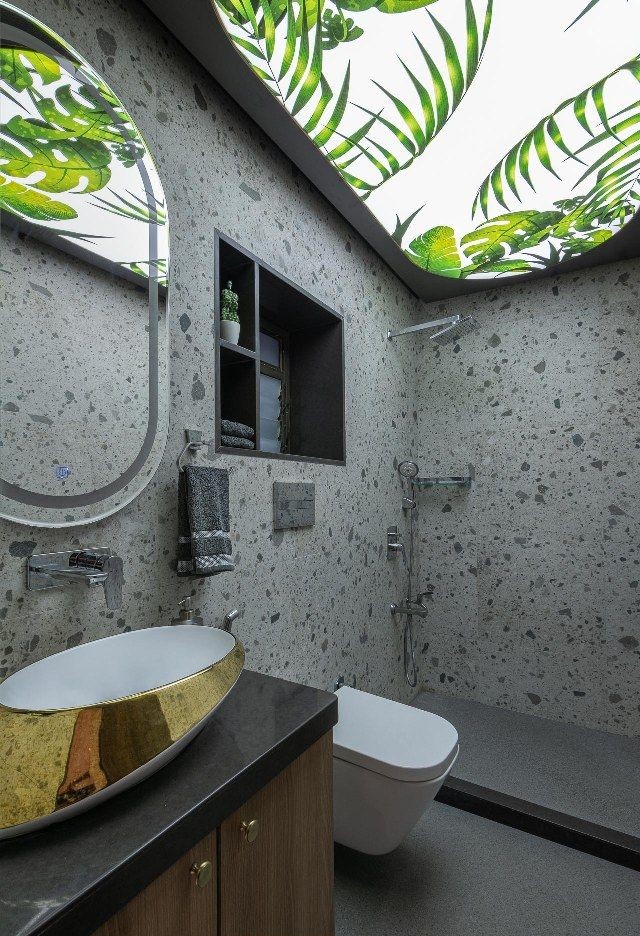 طراحی سقف کاذب سه بعدی توالت به شکلی که امکان مخفی کردن نورپردازیهای فانتزی وجود داشته باشد و بتوان با تعبیه چراغ های LED، تاثیر بصری عمیقتری ایجاد کرد.