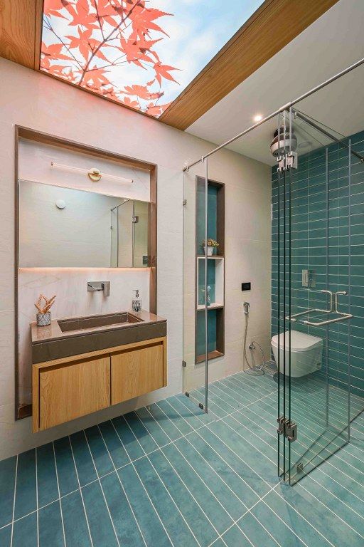 الهام گرفتن از عناصر طبیعی مانند چوب، سنگ یا امواج آب، برای ایجاد حس آرامش و گرمابخشی در فضای سرویس بهداشتی.