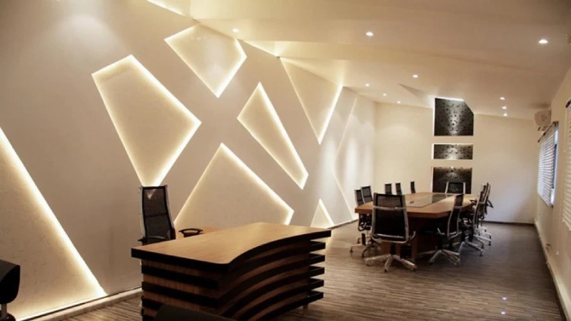 در این طراحی، منبع نور LED در پشت پنلها تعبیه میشود تا دیوار در شب جلوهای درخشان و چشمگیر پیدا کند. ترکیب نور و سایه فضای داخلی را خاص و متفاوت میکند.