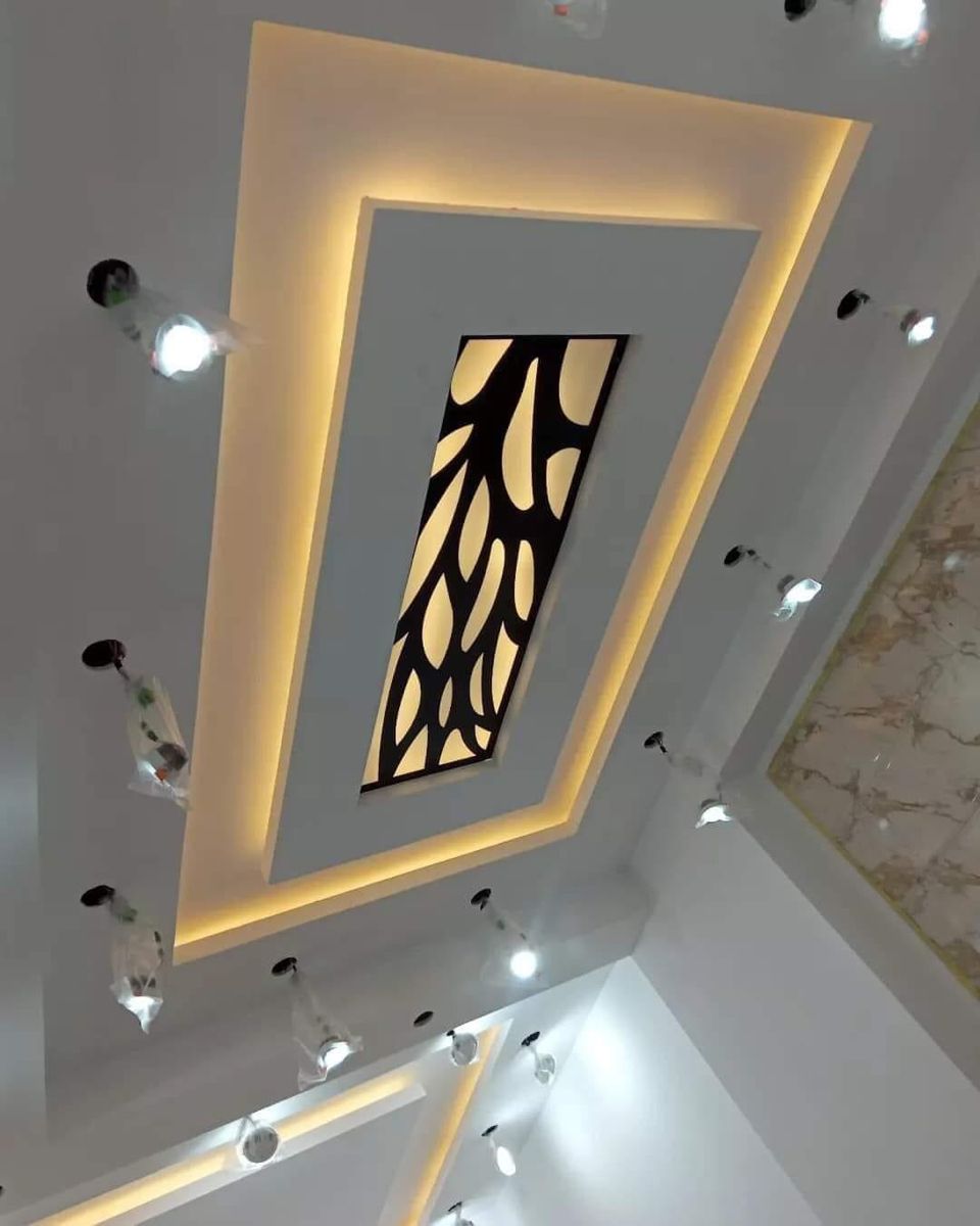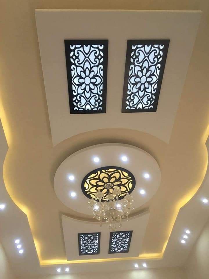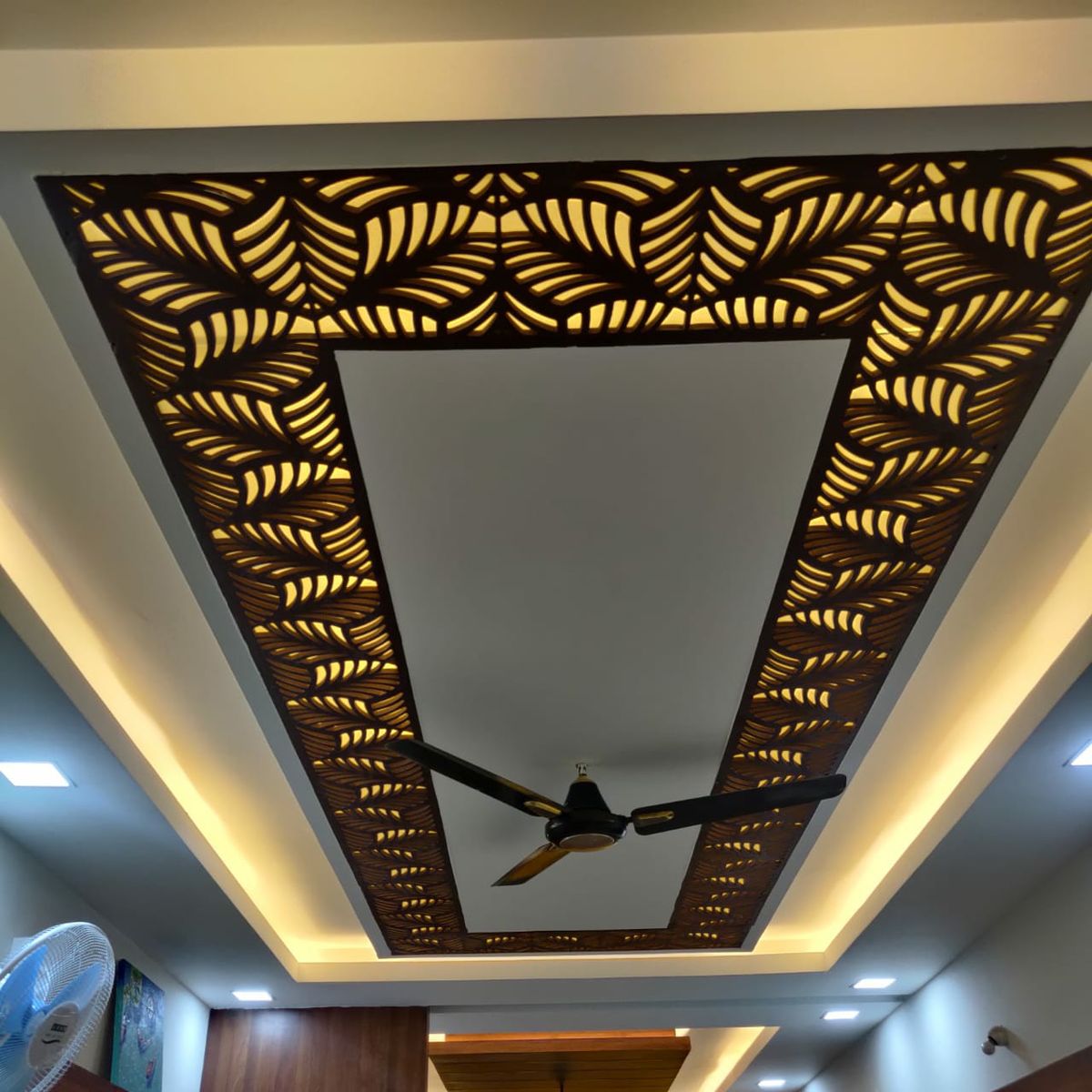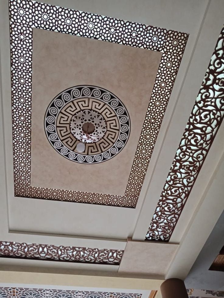 یکی از رایجترین طرحها، پنلی دایرهای در مرکز سقف است که با نقشهای سنتی ایرانی یا الگوهای گلدار CNC شده است. این مدل برای خانههایی با المانهای کلاسیک و نورپردازی مرکزی بسیار چشمنواز و باشکوه است.