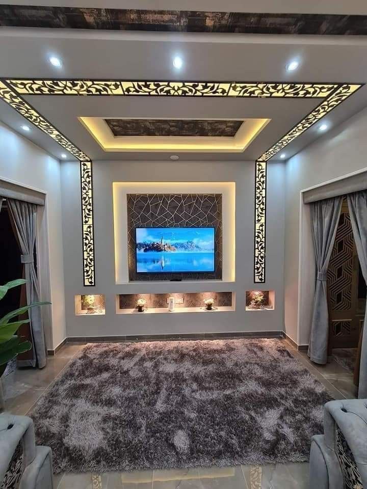 در این مدل، حاشیههای سقف با نوارهای CNC برش خورده و نور مخفی در پشت آنها کار شده است. این سبک علاوه بر نظم و تقارن، عمق فضایی بیشتری ایجاد میکند و بهویژه در پذیراییهای بزرگ، بسیار کاربردی است.