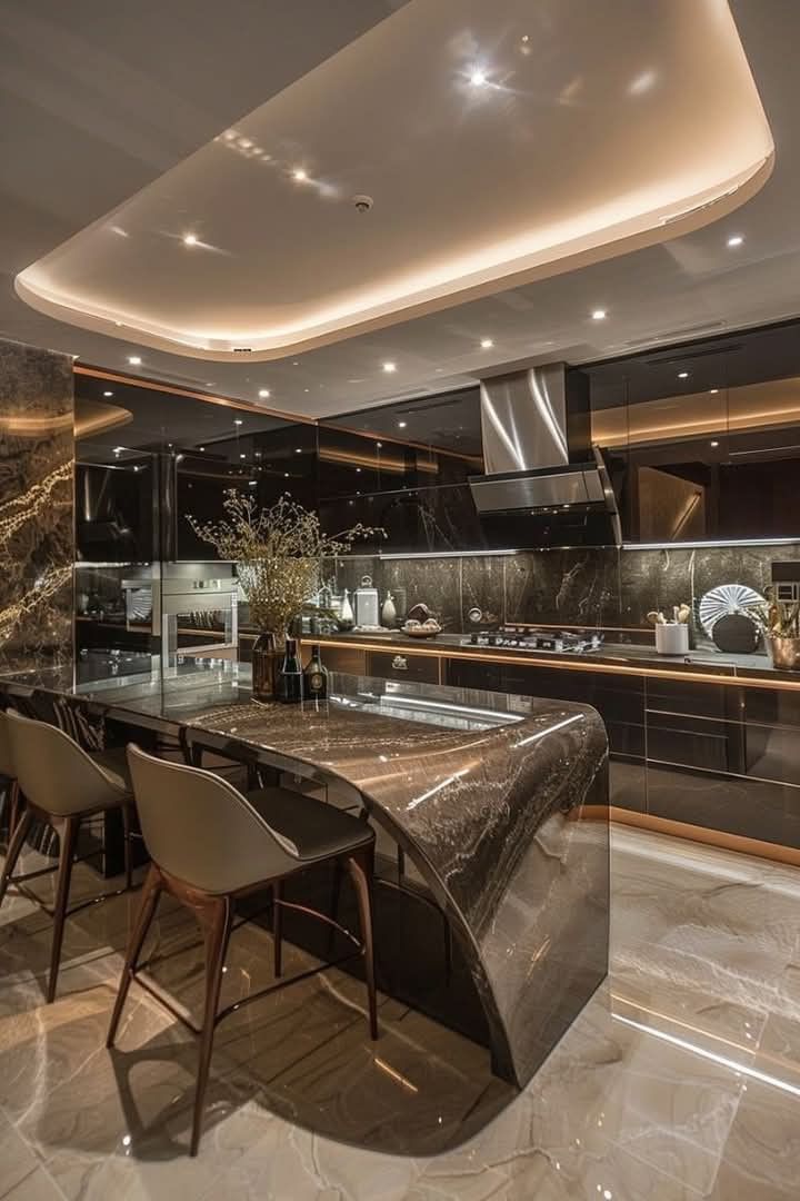 در آشپزخانههایی که میز ناهارخوری یا جزیره مرکزی دارند، استفاده از باکس سقفی دایرهای تمرکز بصری زیبایی ایجاد میکند. این فرمها باعث میشوند سقف آشپزخانه از نظر فرم، مرکزیت داشته باشد.