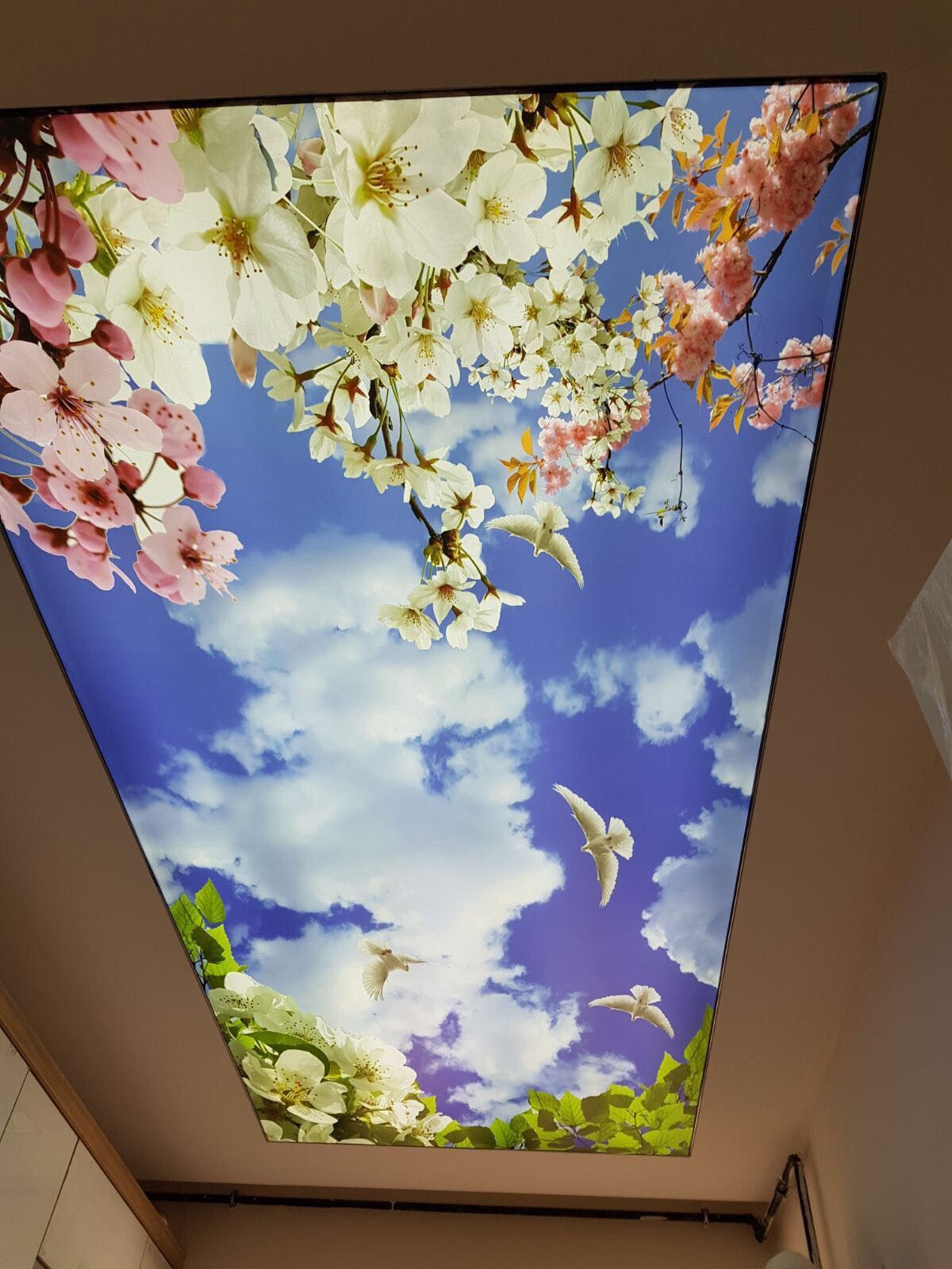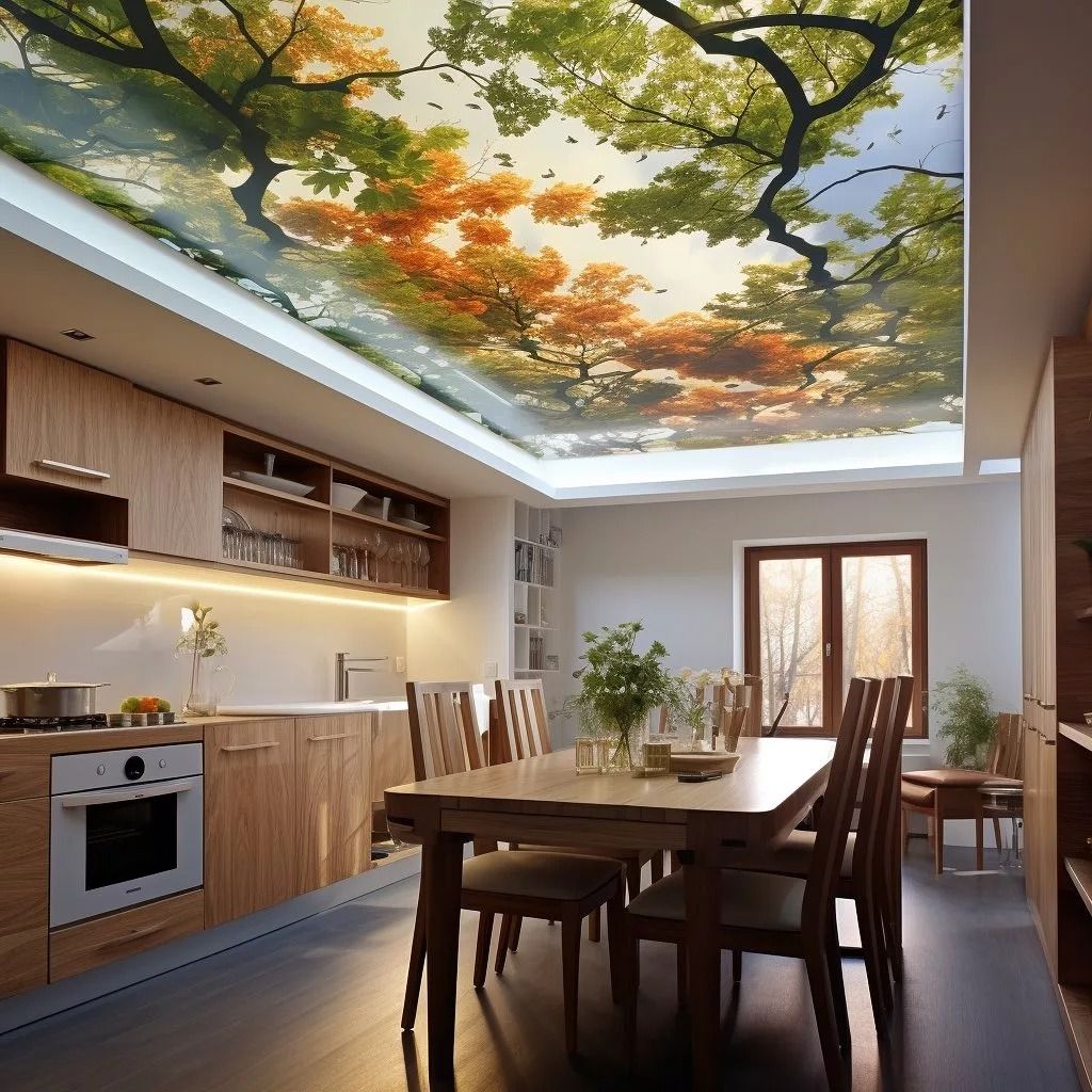 چاپ طرح گل، مناظر طبیعی، یا حتی کاشیکاری سنتی ایرانی روی سقف