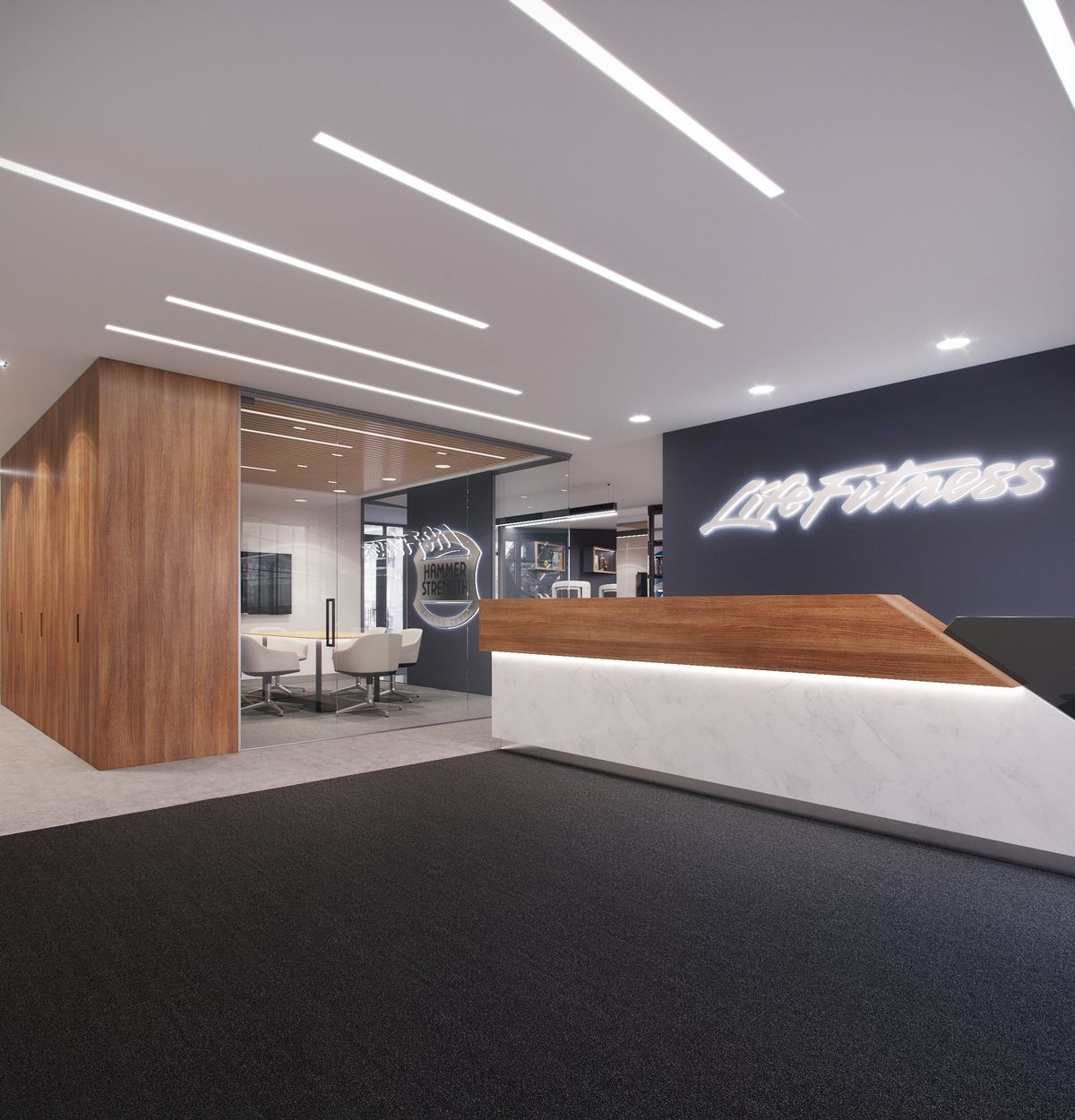 استفاده از طلق آسمان مجازی سهبعدی در ترکیب با کناف سقف، حس طبیعت، نور و آرامش را به فضا وارد میکند. این طرح برای اتاق قرارداد یا نشیمن مشتری بسیار چشمنواز و بهیادماندنی است.