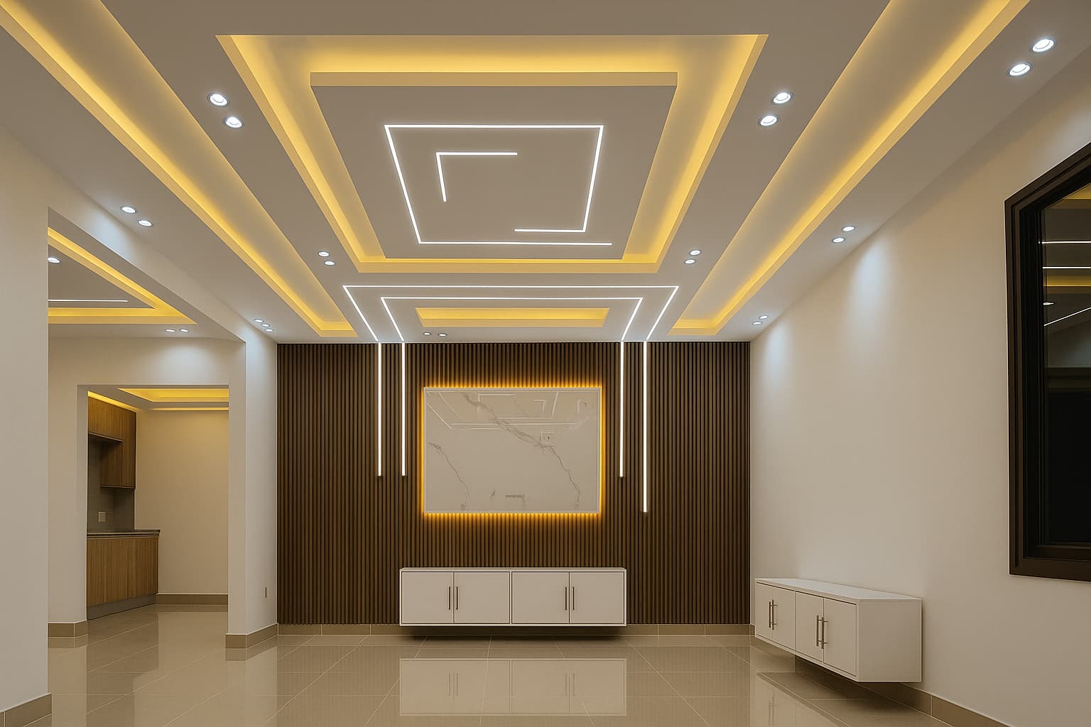 - مدل انتخابی: هرچه طراحی پیچیدهتر باشد (مثل سقف شناور یا سیانسیدار)، قیمت بالاتر خواهد بود.