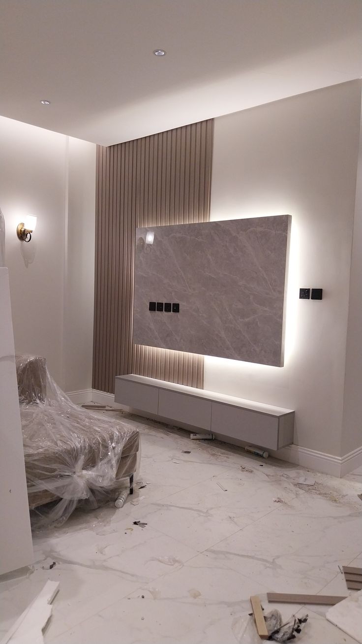 برای اجرای بینقص کناف پشت تلویزیون مربع باید زوایای ۹۰ درجه کاملاً دقیق تنظیم شوند. هرگونه عدم تراز، نظم هندسی قاب را از بین میبرد. تیم کیان دکور با استفاده از ابزارهای تراز لیزری و نقشهکشی دقیق، اجرای قاب را کاملاً منطبق با ابعاد نمایشگر انجام میدهد.