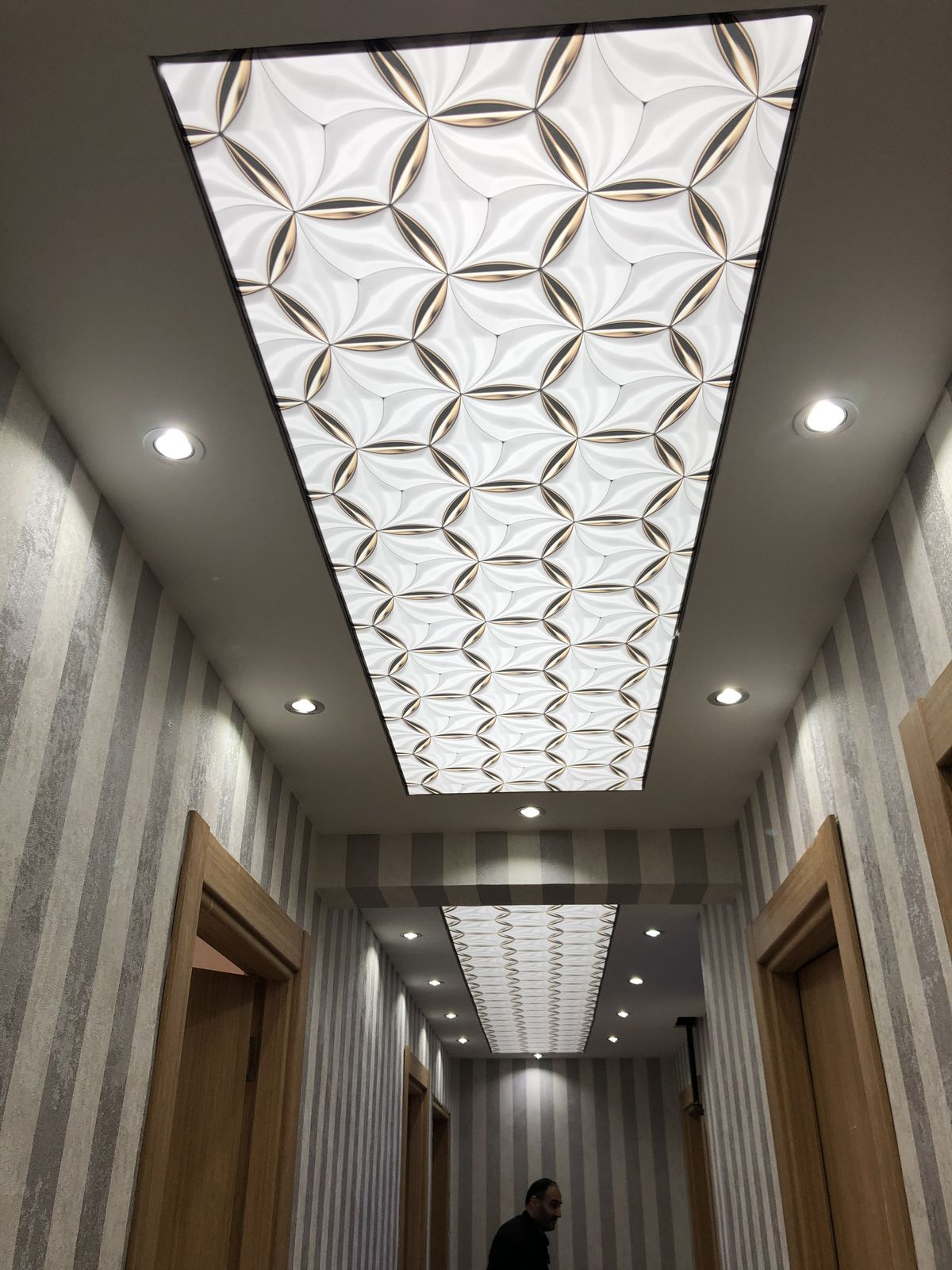 این تایل از چند لایه PVC و طلق تشکیل شده که جلوهای چندبعدی و چشمگیر به سقف میدهد. ترکیب رنگ، عمق و انعکاس نور در این مدل بینظیر است و برای فضاهای مجلل گزینهای کمنظیر محسوب میشود. استحکام بیشتر آن نیز موجب دوام بالاتر در محیطهای پررفتوآمد است.