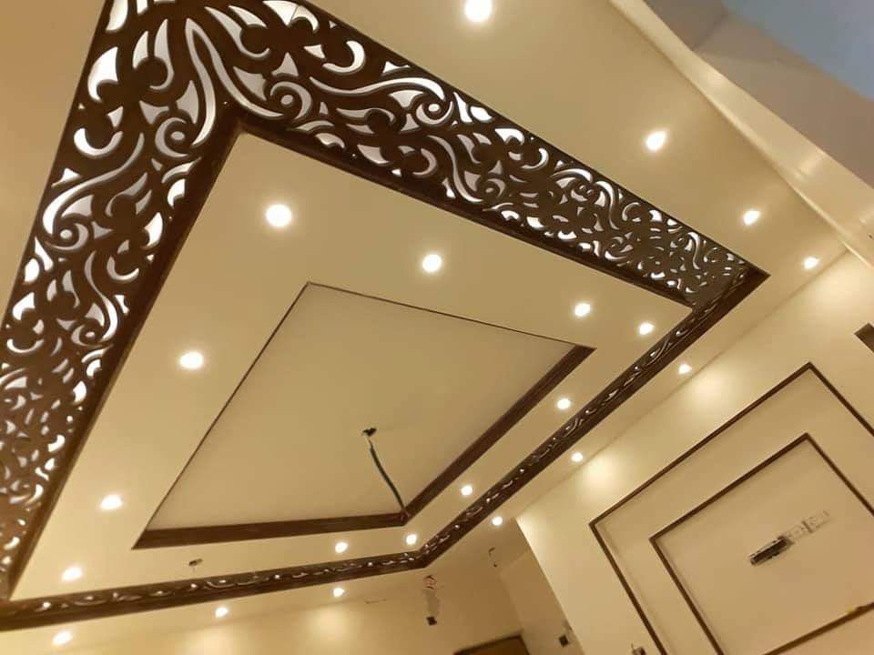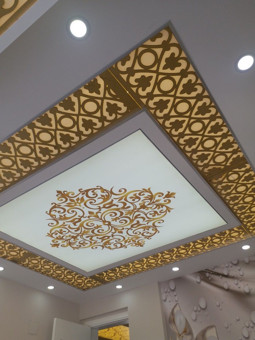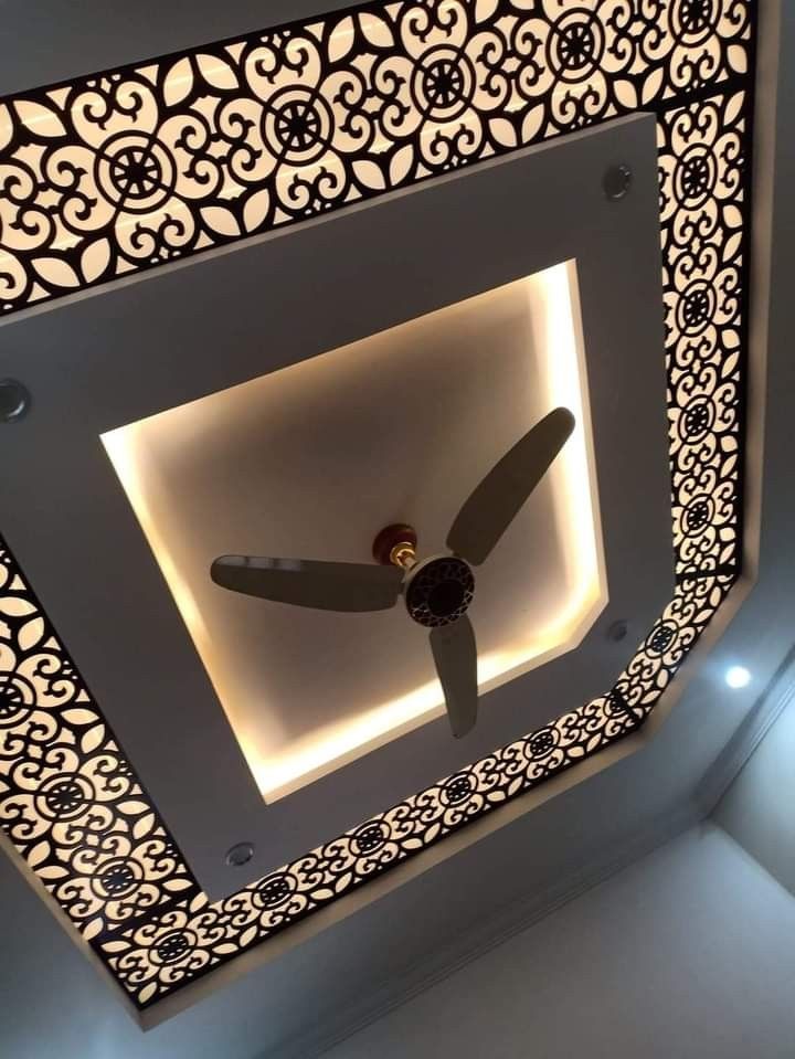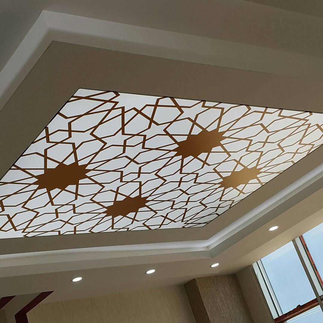 یکی از رایجترین طرحها، پنلی دایرهای در مرکز سقف است که با نقشهای سنتی ایرانی یا الگوهای گلدار CNC شده است. این مدل برای خانههایی با المانهای کلاسیک و نورپردازی مرکزی بسیار چشمنواز و باشکوه است.